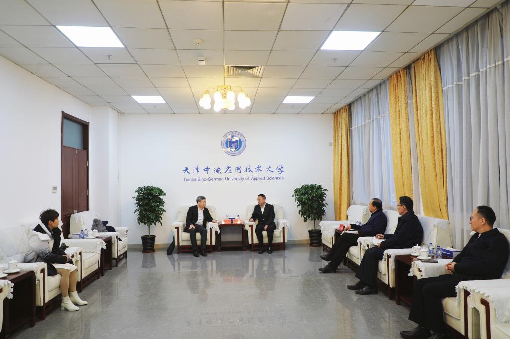 11月29日,九三学社天津市委会秘书长严海到我校走访调研,学校党委书记张继东、党委副书记董杰接待来访并进行了交流座谈。学校党委统战部、党委办公室(校长办公室)负责同志及九三学社天津中德应用技术大学支社负责人陪同座谈。