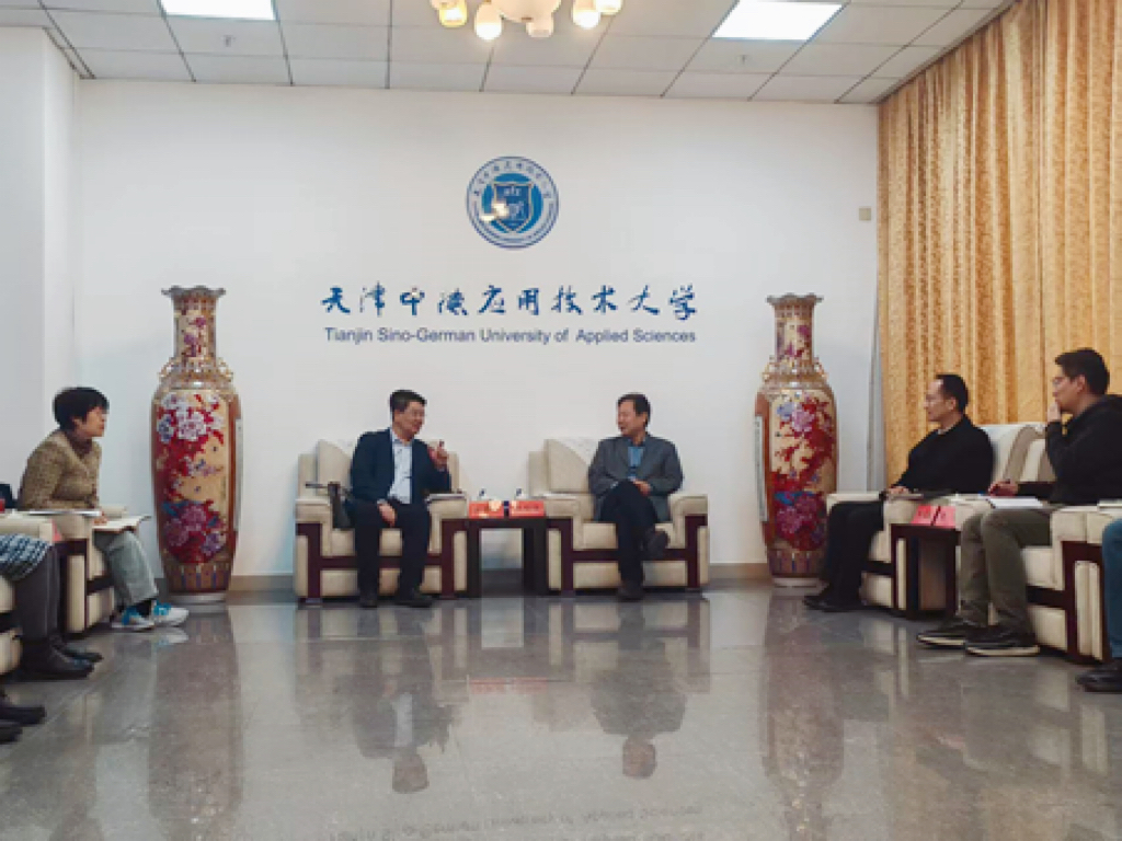 张宗旺对天津中华职教社一行到访表示欢迎,对天津中华职教社多年来对中德应大的支持和帮助表示了感谢,并介绍了学校应用技术大学建设发展基本情况。他指出,学校以习近平总书记关于教育的重要论述为根本遵循,始终坚持职教特色发展,不断加强与天津中华职教社的深入合作,以中德之特色积极承担并参与市社各类重大项目活动,为教育高质量发展持续发力。