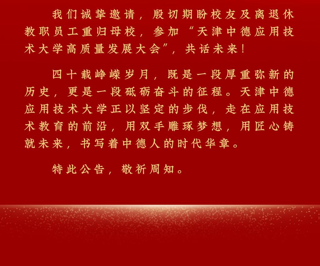 天津中德应用技术大学建校40周年公告