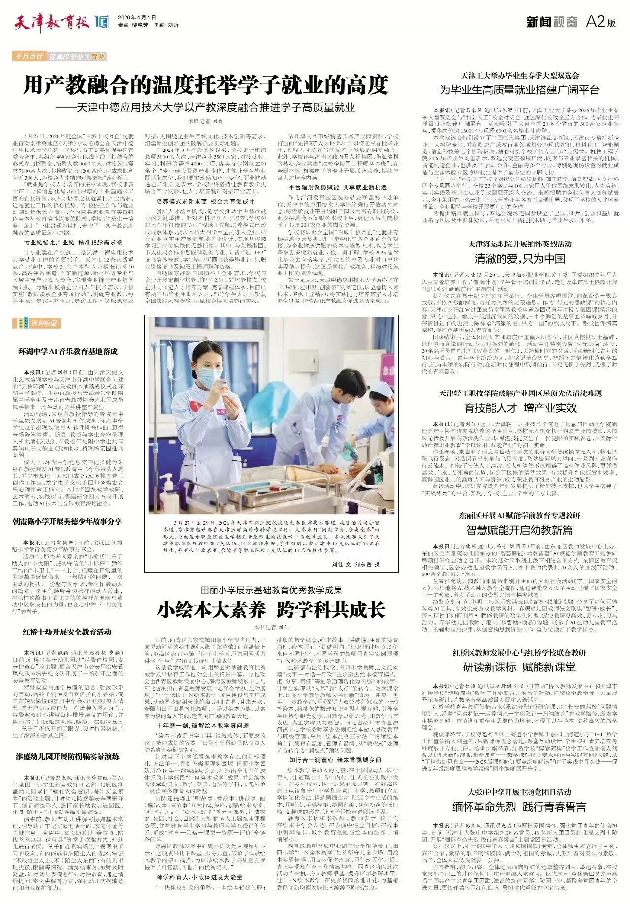 依托津南区市级精密仪器产业园资源,学校打造的“先锋班”人才培养项目即将迎来首批毕业生,实现人才培养与区域产业发展的深度融合。此外,学校还与津南区政府及荣程集团、华海清科等核心企业共建“政校企协同工程师涵养班”,在金属材料、机械电子等专业开展联合培养,持续丰富人才培养内涵。