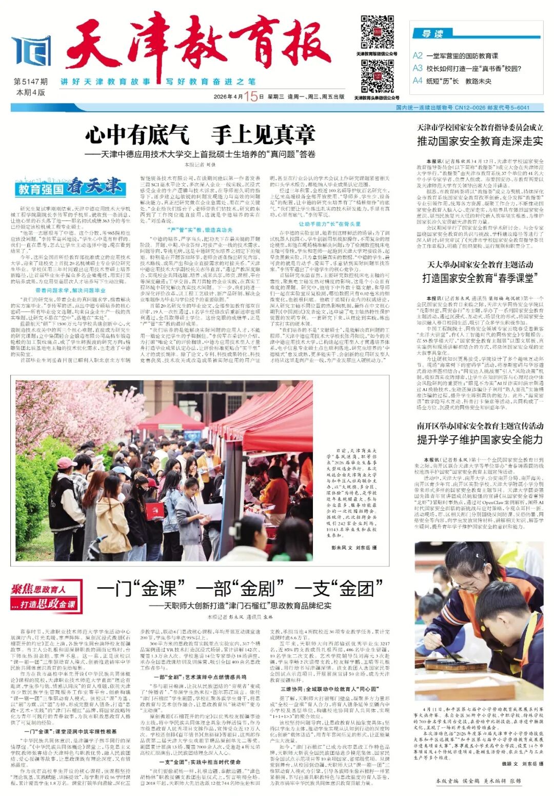4月15日,天津教育报报道我校交上首批硕士生培养的“真问题”答卷,全文如下: