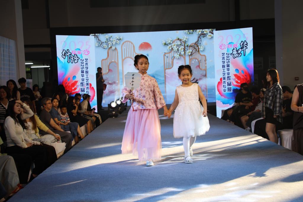 小朋友们观摩了2025年艺术学院艺术设计系工艺美术专业的“纤语花笺”毕业时装秀,一直为模特的精彩演绎欢呼,不少孩子表示“长大后也要设计属于自己的服装”。小嘉宾们还进行了汉服走秀,可爱的小朋友们用纯真的方式为大家带来不一样的视觉体验,萌化了在场所有人的心!
